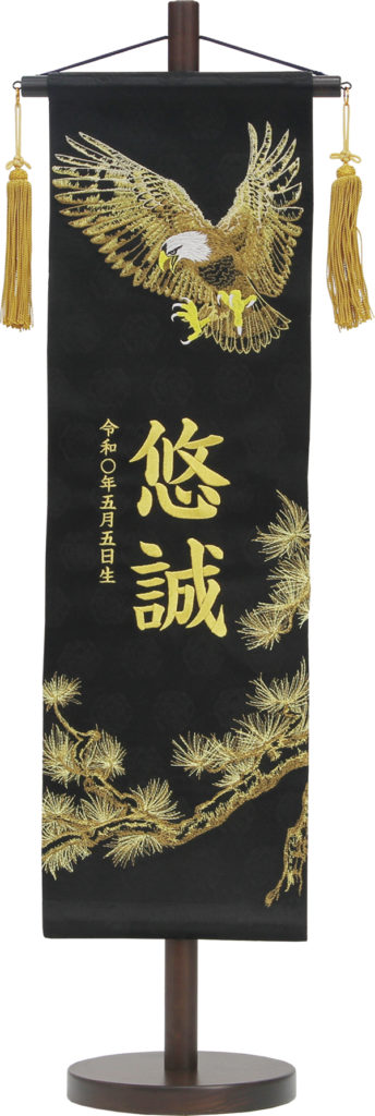 中 極上総刺繍 松に鷹(黒)