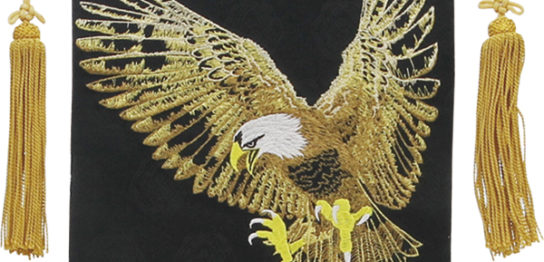 中 極上総刺繍 松に鷹(黒)